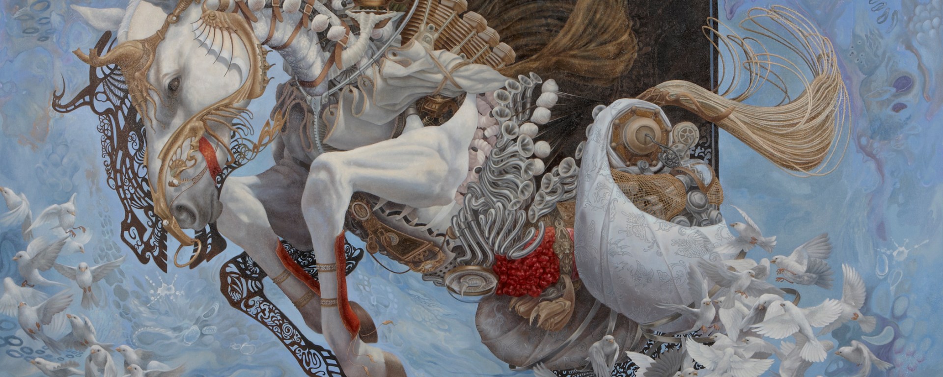 Her style is an original fusion of surrealism, contemporary realism and classical figurative painting combined with influences from the realms of technology, philosophy, and biology. Her skills and imaginary mind have brought her to create pieces that are hard to forget. It is easy to get completely mesmerized by all the details in her paintings.