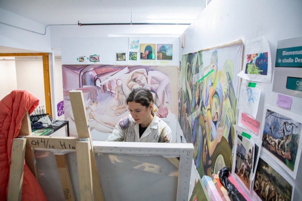 Sarah Cloutier is an artist and a figurative painter based in Montreal. She is presently completing a Master of Fine Arts at UQAM (Montreal) and she obtained her bachelor of Fine Art from Concordia University (Montreal), majoring in Studio Art with a minor in sociology. Her work explores the role of materiality in image making within the context of the digital age, ubiquitous consumerism, hyperproductivity, and society of control. Through painting, she interrogates our gaze and creates interactions between the experienced, lived present and art history. Her work was presented within two solo shows, Comprendre qu’on ne comprend rien (2022) and Vanités de confinement (2022). It has also been part of group shows such as dont Peinture fraîche et nouvelle construction à Art Mûr (2024), Aperception at l’UQAM (2023), Ouverture(s), Art mobile in Quartier Latin, Art Cible at Galerie 2112, the public art project of the REM – Programme UniR, and the Symposium de la Peinture de la Petite-Rivière-St-François.