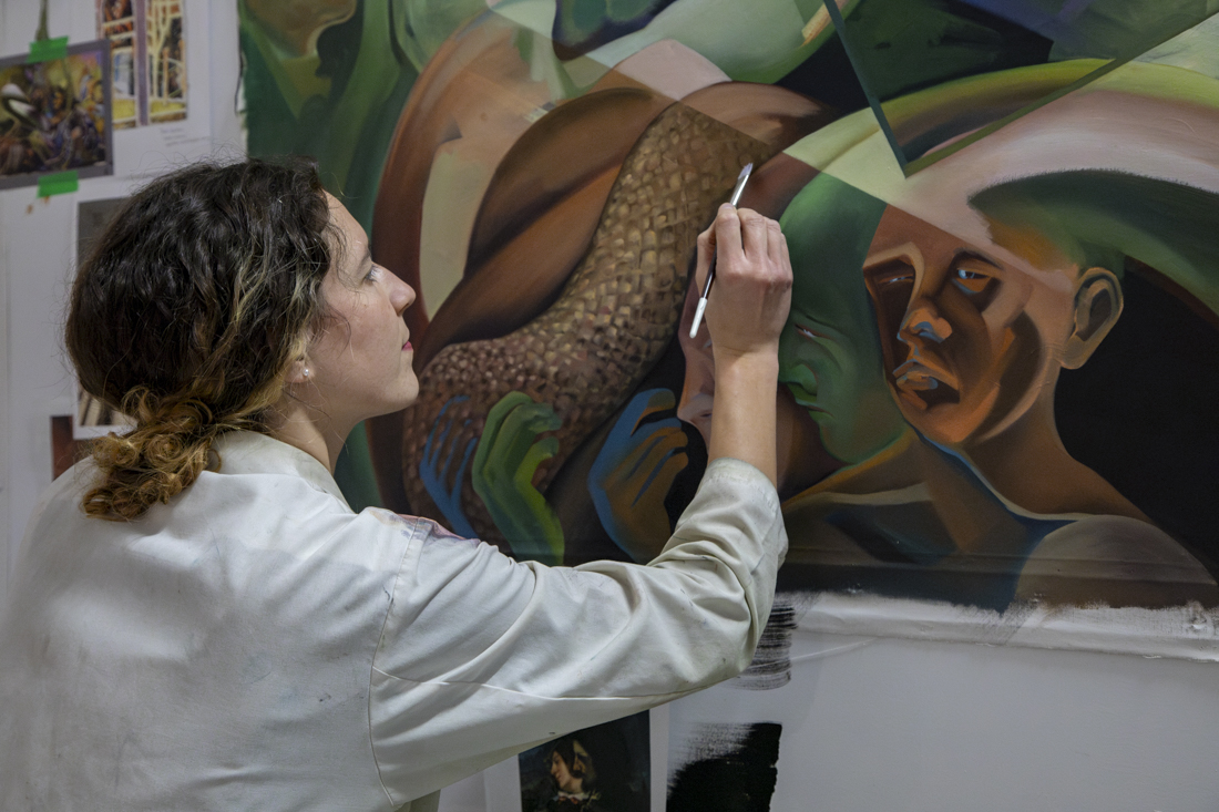 Sarah Cloutier is an artist and a figurative painter based in Montreal. She is presently completing a Master of Fine Arts at UQAM (Montreal) and she obtained her bachelor of Fine Art from Concordia University (Montreal), majoring in Studio Art with a minor in sociology. Her work explores the role of materiality in image making within the context of the digital age, ubiquitous consumerism, hyperproductivity, and society of control. Through painting, she interrogates our gaze and creates interactions between the experienced, lived present and art history. Her work was presented within two solo shows, Comprendre qu’on ne comprend rien (2022) and Vanités de confinement (2022). It has also been part of group shows such as dont Peinture fraîche et nouvelle construction à Art Mûr (2024), Aperception at l’UQAM (2023), Ouverture(s), Art mobile in Quartier Latin, Art Cible at Galerie 2112, the public art project of the REM – Programme UniR, and the Symposium de la Peinture de la Petite-Rivière-St-François.